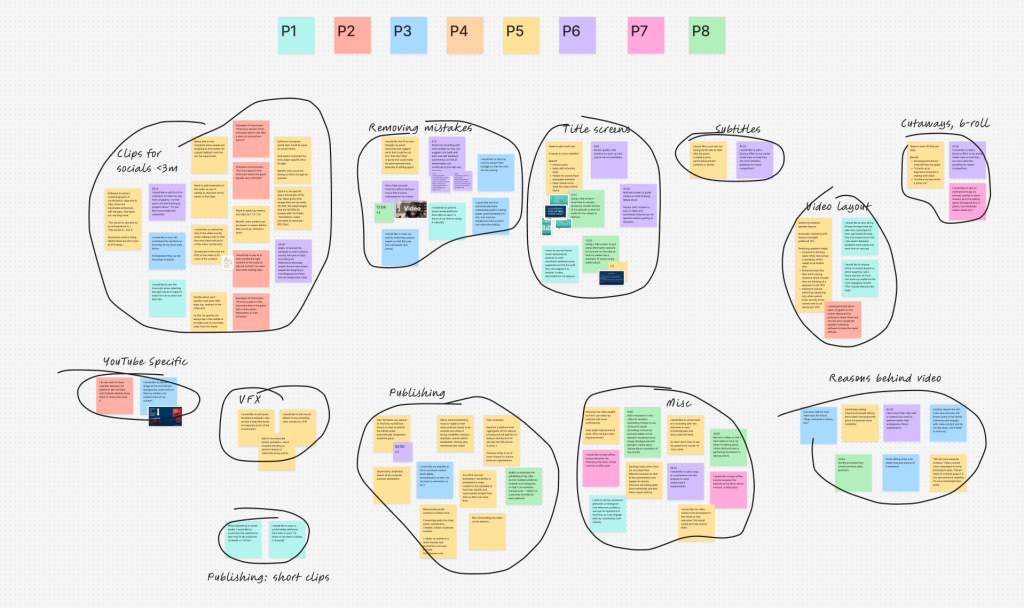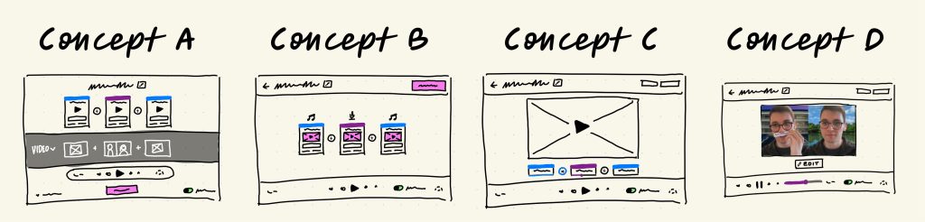 | There were multiple ways of doing a video podcast (some had access to a studio, some just recorded video calls, some didn’t want to show their face but show slides) | Contemporary video editing software was not well equipped to handle those different ways of creating podcasts well and therefore often got in the way costing the user time. | Design a flow that supports different ways of creating a podcast without the interface becoming too complex, enable dynamic editing that doesn’t get in the way |